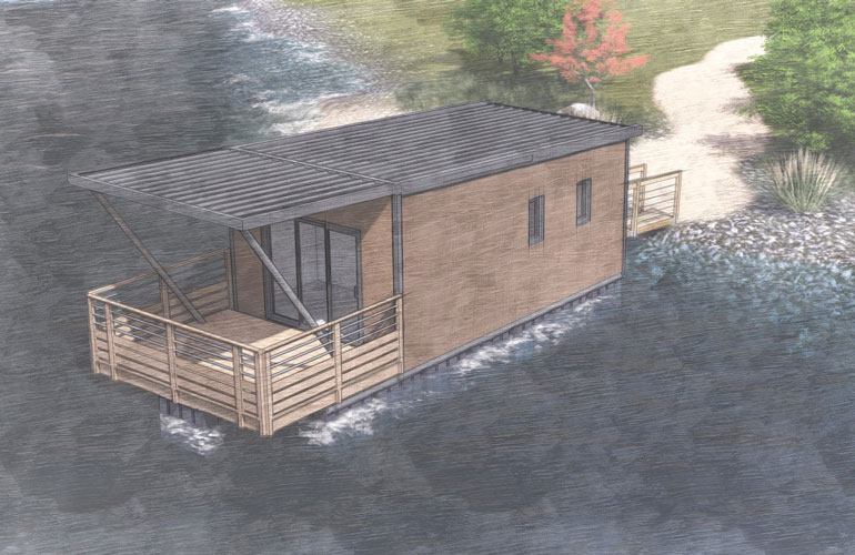 AquaLodge est le gîte flottant économique, imaginé pour les investisseurs souhaitant un modèle à la fois complet en termes de confort mais surtout économique en termes de cout.