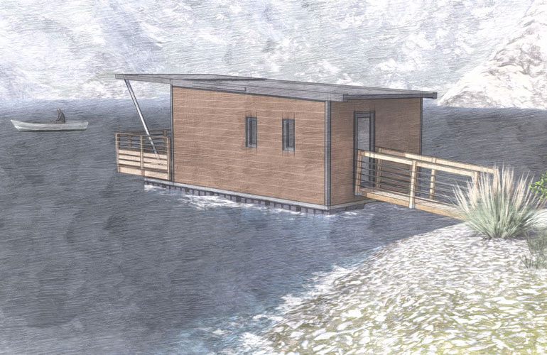 Le point fort de ce modèle est son prix d’entrée de gamme qui saura séduire les professionnels du tourisme souhaitant proposer une offre bien différente des cabanes habituelles présentent sur le marché. Prévu à la fois pour une installation sur berge (avec amarrage par bracons) ou pour une installation sur ponton (ponton linéaire desservant chaque cottage), l’Aqualodge se démarque des autres modèles de la gamme Aquashell par ses passes avant manquants ; une évolution dans notre concept puisque l’accès au gîte flottant se fait par une porte d’entrée située en façade.