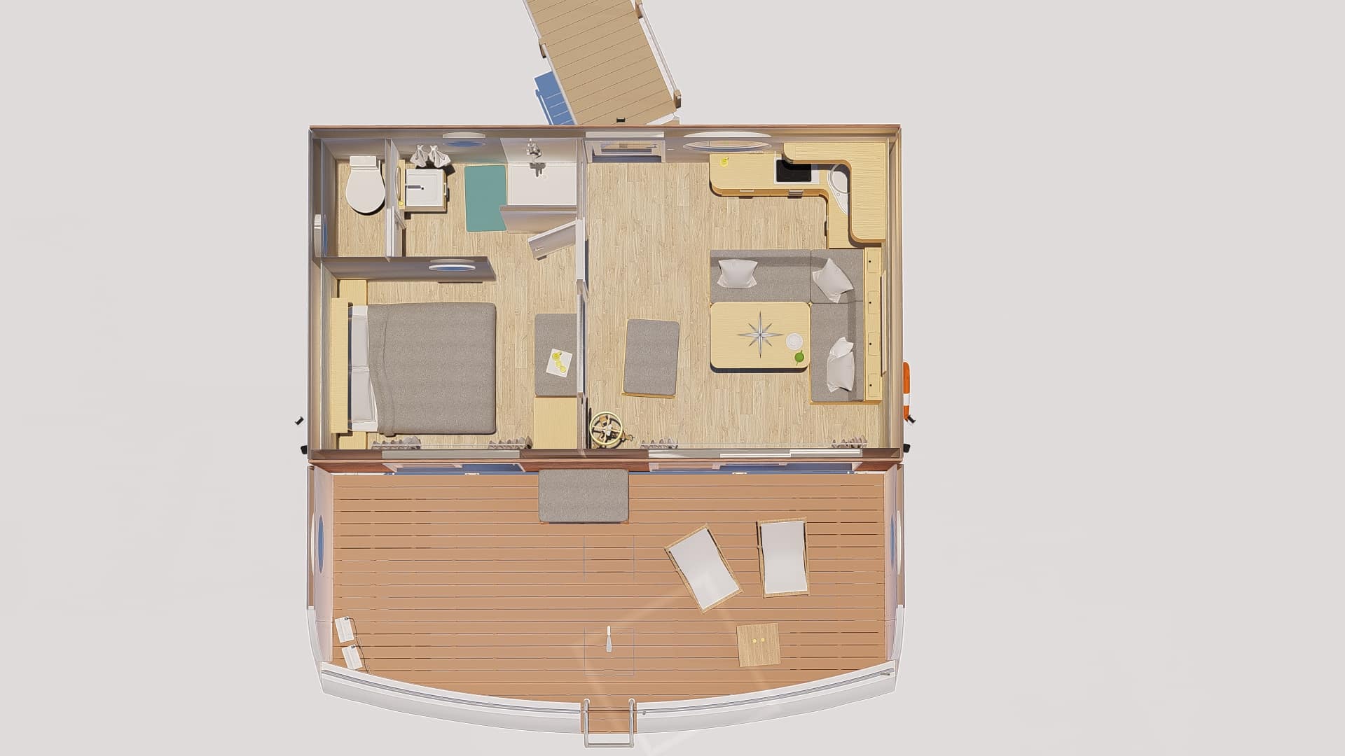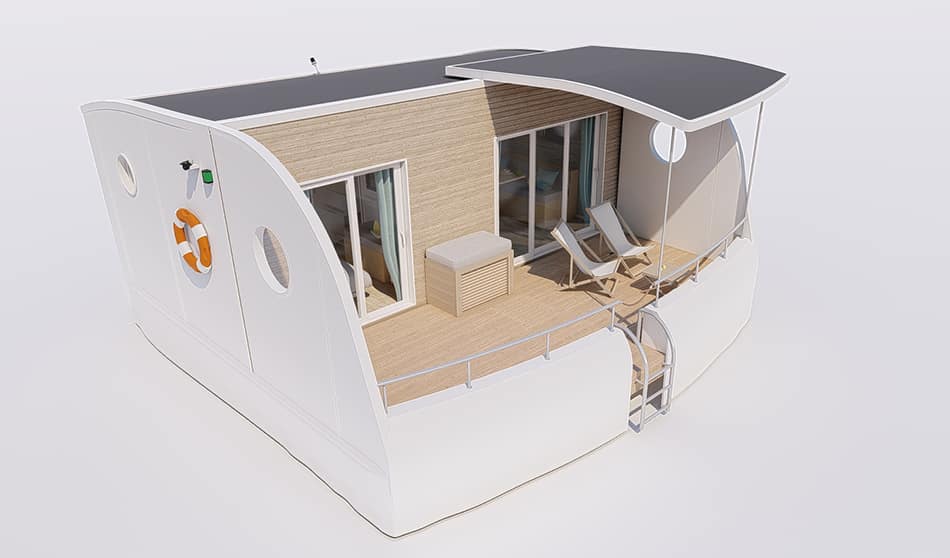 AquaBoat Solo, appelé communément Lodge Boat, est le modèle Navire imaginé pour les professionnels du tourisme en France et à l’étranger souhaitant diversifier leur offre vers une solution d’hébergements plus attractive et innovante. Ce modèle est totalement adapté pour la conception d’un village entier constitué de Lodges Boats .