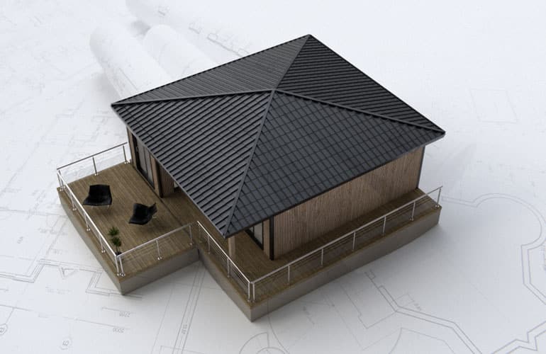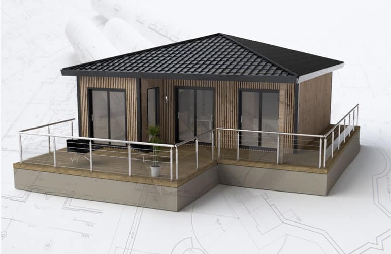 La maison flottante 55 m², un habitat flottant familiale tout confort ! Construite en ossature bois, cette maison flottante est fabriquée selon les normes de la construction au même titre qu’une maison traditionnelle en bois posée sur le sol. Elle se différencie par sa toiture 4 pentes ainsi que par sa forme en « L » qui la rends unique. Ses grandes ouvertures remplissent de lumière l’intérieur de cette maison flottante mais servent avant tout à vous donner un accès privilégié sur la terrasse qui est aussi en forme de « L ».