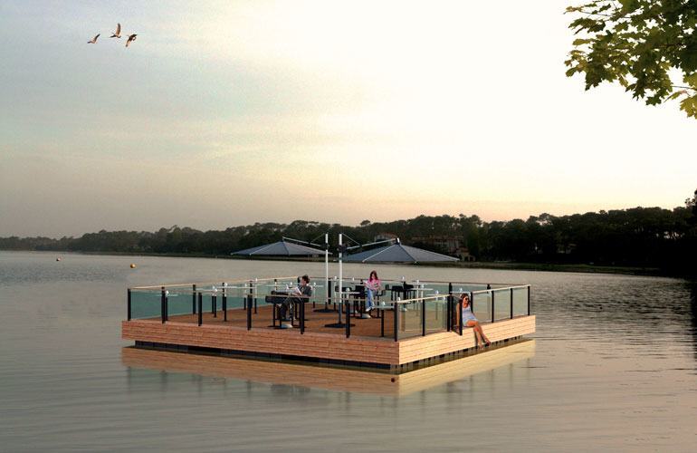 Développé en interne, le projet « AquaTerrazza » s’adresse aux professionnels souhaitant diversifier leur offre vers des concepts plus insolites ! Aquashell développe jour après jour toutes sortes de projets flottants allant de la maison de 100 m² totalement autonome à la chambre flottante en passant par les pontons « Handi-Pêche » ou un tout nouveau concept de brasserie flottante.