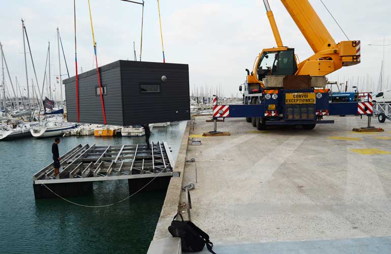 Conçu spécialement sur-mesure, le bureau flottant présent dans le port de La Rochelle, est une création AQUASHELL.